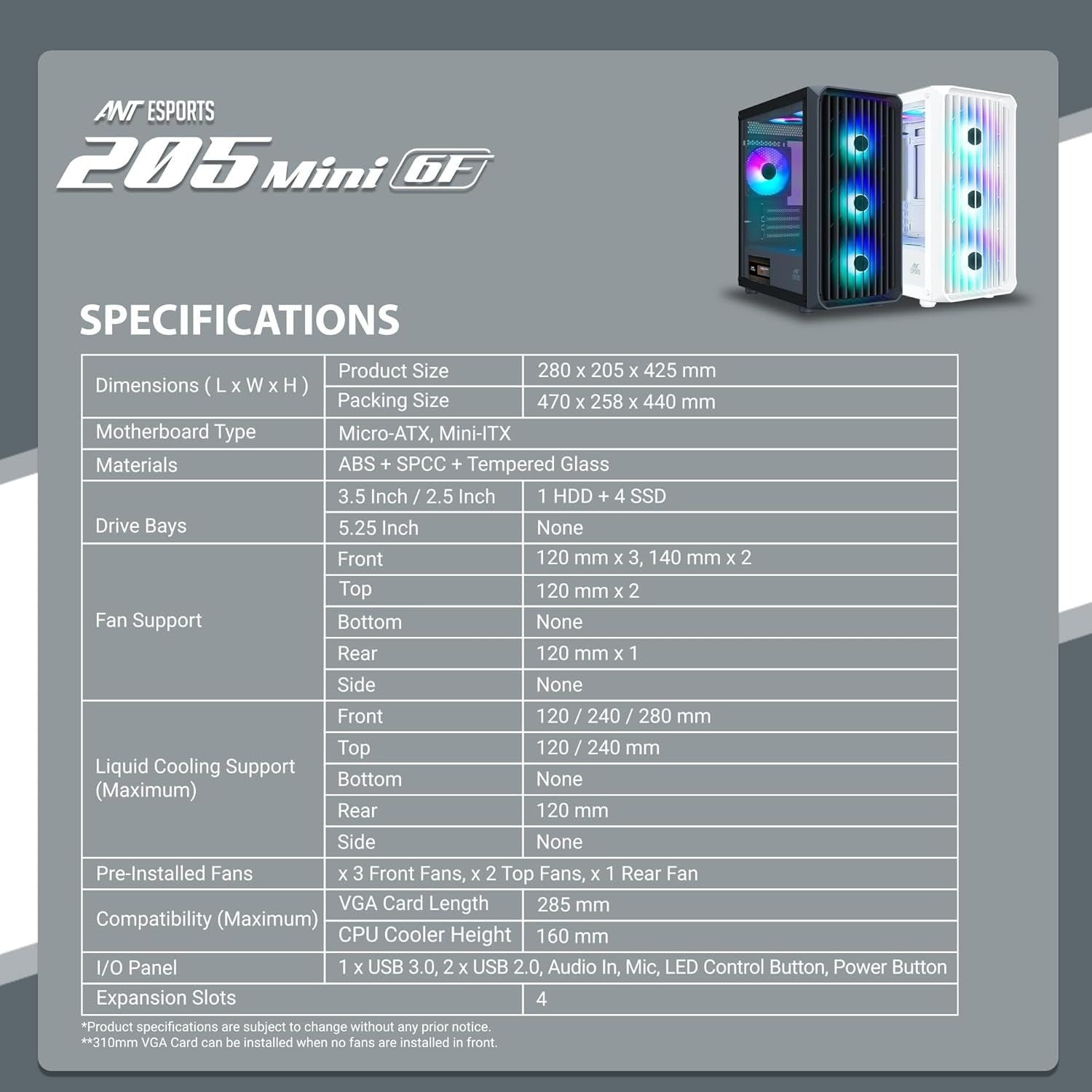 | Compatible Devices | Micro-ATX, Mini-ITX motherboards, standard graphics cards, 1 HDD, 4 SSDs, standard cooling systems |